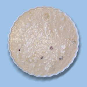 À l’instar de nombreuses recettes yiddish, il s’agit de valoriser, de magnifier le produit… c’est simplement une sorte de flan qui enveloppe directement les fruits, sans abaisse de pâte, à la différence des tartes.