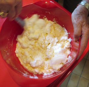 Avec une spatule souple, incorpore délicatement les blancs à l’appareil avant d’enfourner.