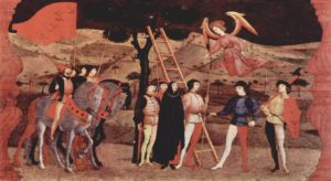 (Illustration: Prédelle du Miracle de l’hostie profanée peinte en 6 panneaux par Paolo Ucello entre 1467 et 1469. Elle est exposée à la Galerie Nationale des Marches à Urbino.