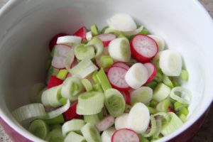 1 botte ou1/2 botte d’oignons blancs avec les tiges selon votre goût.