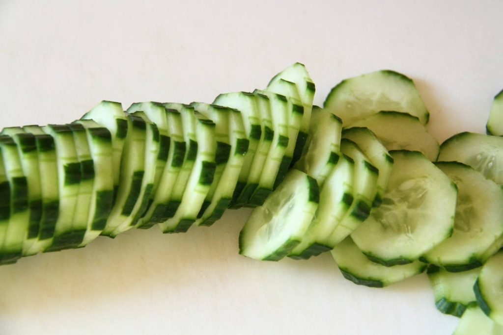 Epluchez votre concombre en laissant la moitié de la peau voir photo