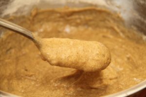 Ajoutez doucement tout en mélangeant la farine puis les autres ingrédients la pâte doit être épaisse mais rester coulante.
