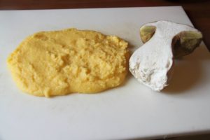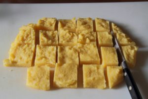 – Quand la mamaliga est refroidie la découper et carreaux de +- 2 cm