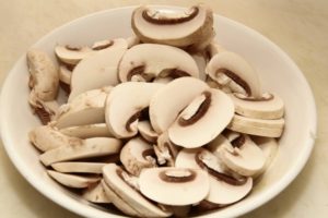 – Quand ils sont légèrement roussis, cuire les champignons et rajouter 1 verre de vin