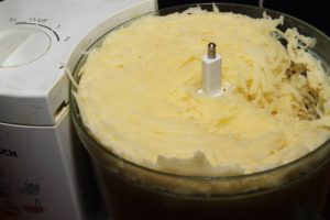 – Râper les pommes de terre à la main ou au robot.