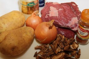 – Mettre à cuire LE SOIR en Tchoulent les pommes de terre râpées, les oignons, la viande, les épices et les champignons. Tasser les ingrédients soit dans la mijoteuse soit dans une cocotte allant au four mais pas sur le feu. Ajouter 3 ou 4 verres d’eau. L’eau ne doit pas dépasser, juste à fleur.