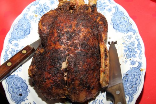 – Vous piquez à la jointure de la cuisse avec une fourchette ou un couteau bien pointu qui doit ressortir sans trace de sang.