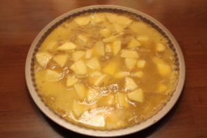 – Mettre à la surface le restant de pomme et les enfoncer doucement dans la pâte.