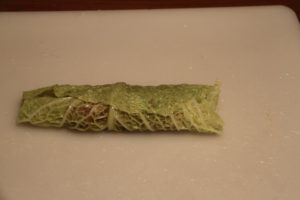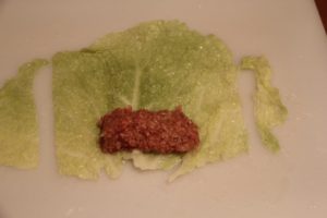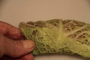 Vous détachez les feuilles de chou et vous les blanchissez une ou deux minutes à l’eau bouillante. Vous pouvez également utiliser des feuilles de chou en saumure qu’on trouve dans les magasins qui vendent des produits des Balkans.