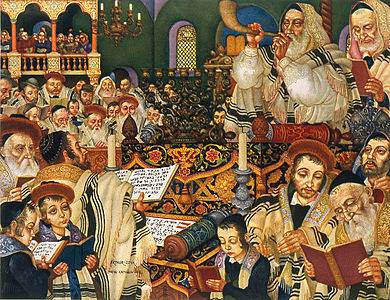 En 1921, Szyk s’installe en France où il reprend ses études d’art. Il expérimente divers styles contemporains avant d’être profondément influencé par le style complexe et décoratif de l’illumination. Cela aboutit à la commande de produire le « Statut de Kalisz », 45 pages illustrées qui glorifient l’édit du 13ème siècle qui accorda des droits de citoyenneté aux Juifs en Pologne. L’oeuvre de Szyk comprend des scènes miniatures et des portraits, des lettres initiales enluminées, des motifs de bordure décoratifs et symboliques et de la calligraphie.