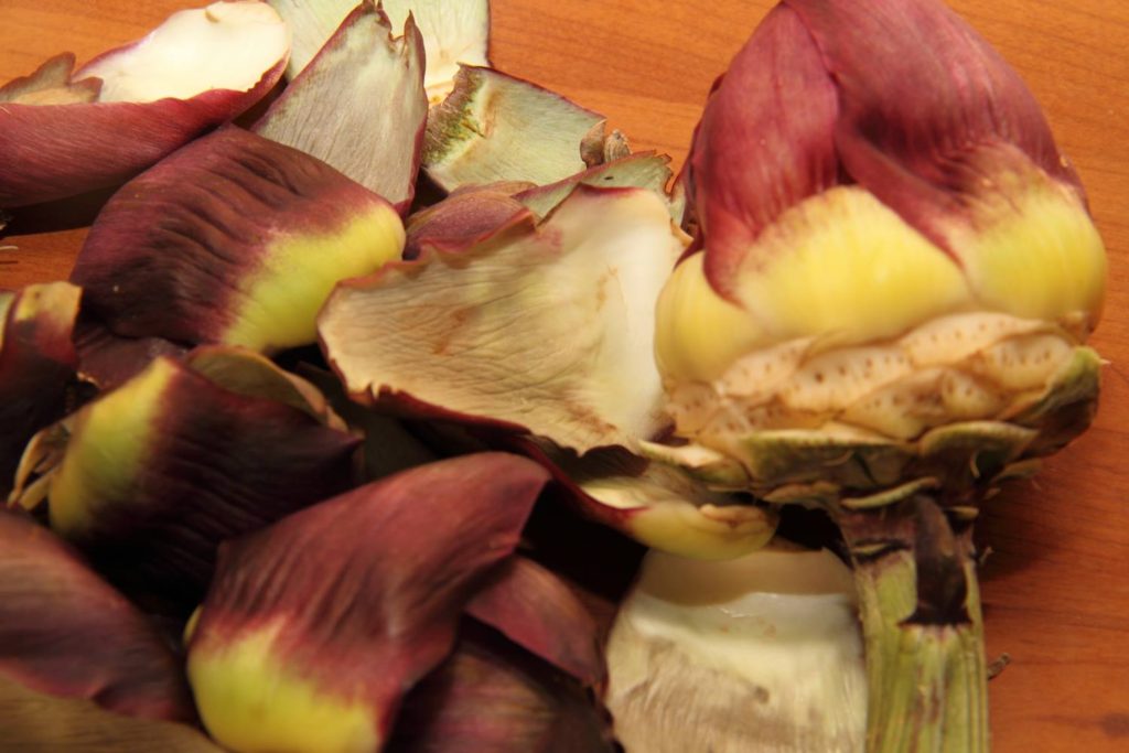 « Tourner » les artichauts c’est-à-dire donner aux artichauts une belle forme pour la cuisson. Après avoir enlevé toutes les feuilles extérieures couper le haut des feuilles qui est dur.