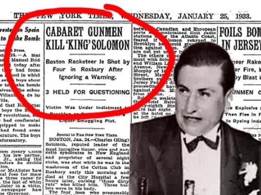 24 janvier 1933. Assassinat de Charley « King » Solomon, l’homme qui contrôlait le trafic illégal d’alcool et de stupéfiants en Nouvelle-Angleterre, ainsi qu’une grande partie des jeux de hasard illicites et de la prostitution.